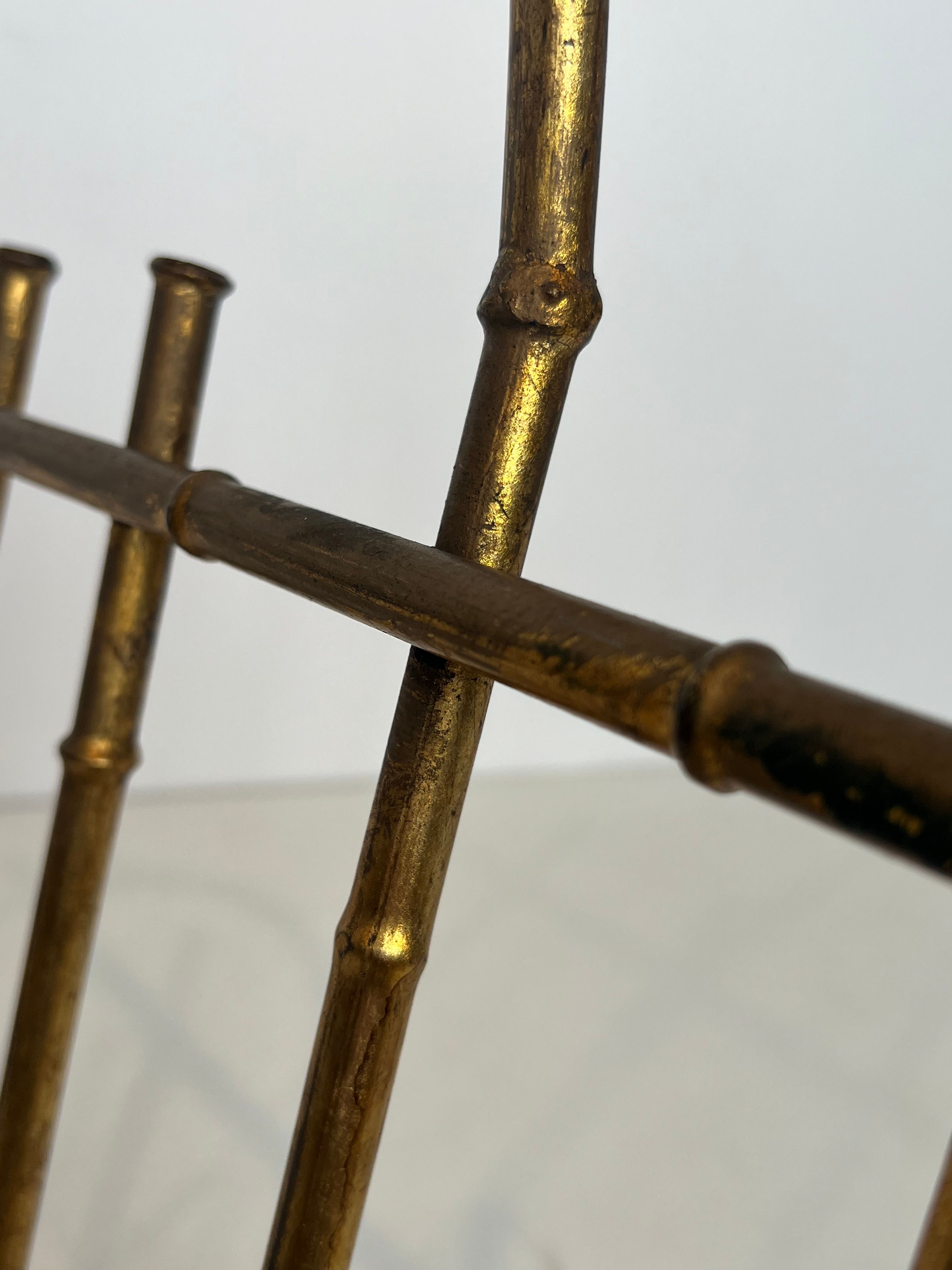 Faux-bamboo-style gilt metal magazine rack. French work attributed to Maison Baguès. Circa 1940