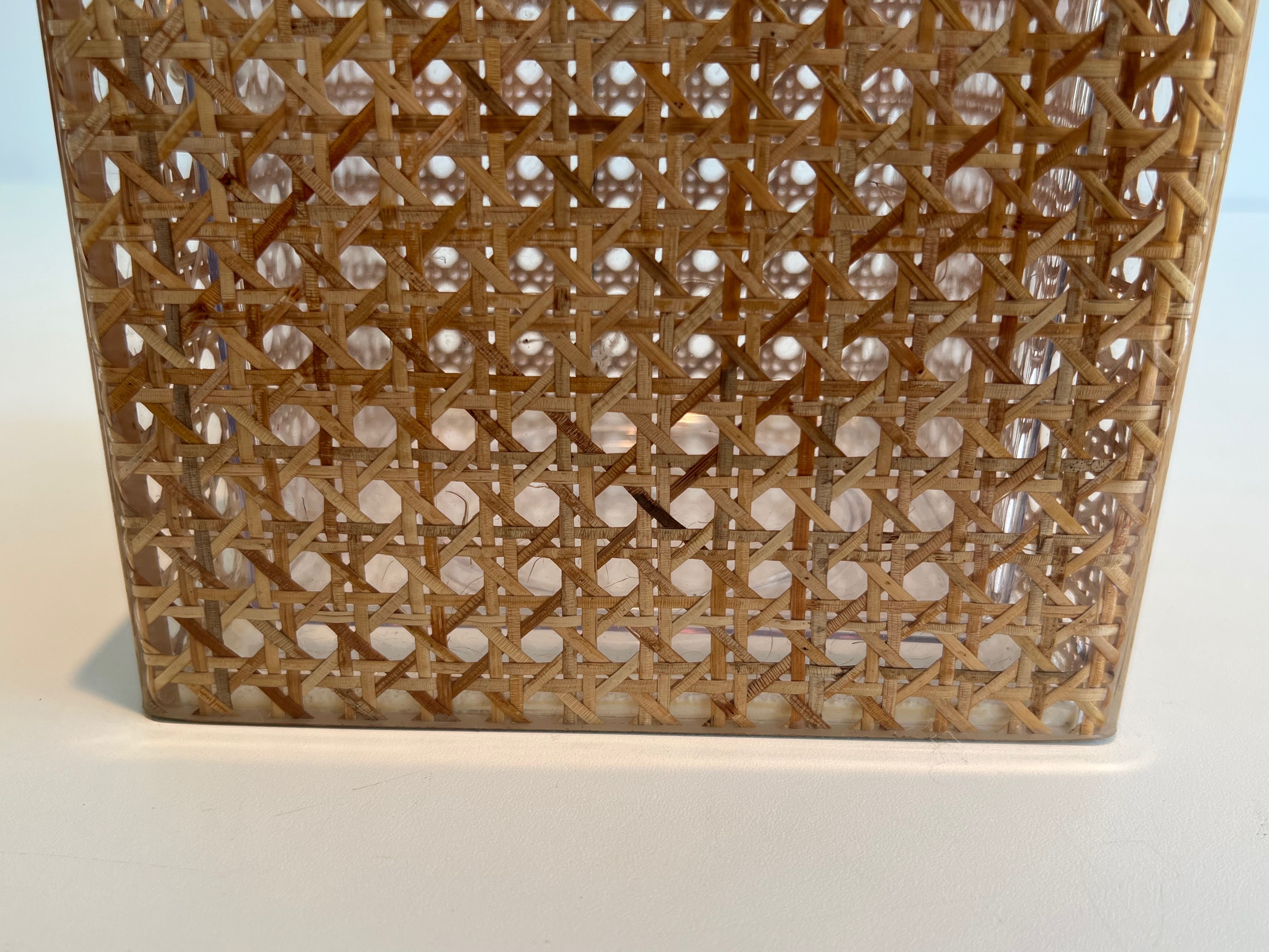 Lucite, Caned and Brass Ice Bucket in the Style of Christian Dior et Gabriella Crespi