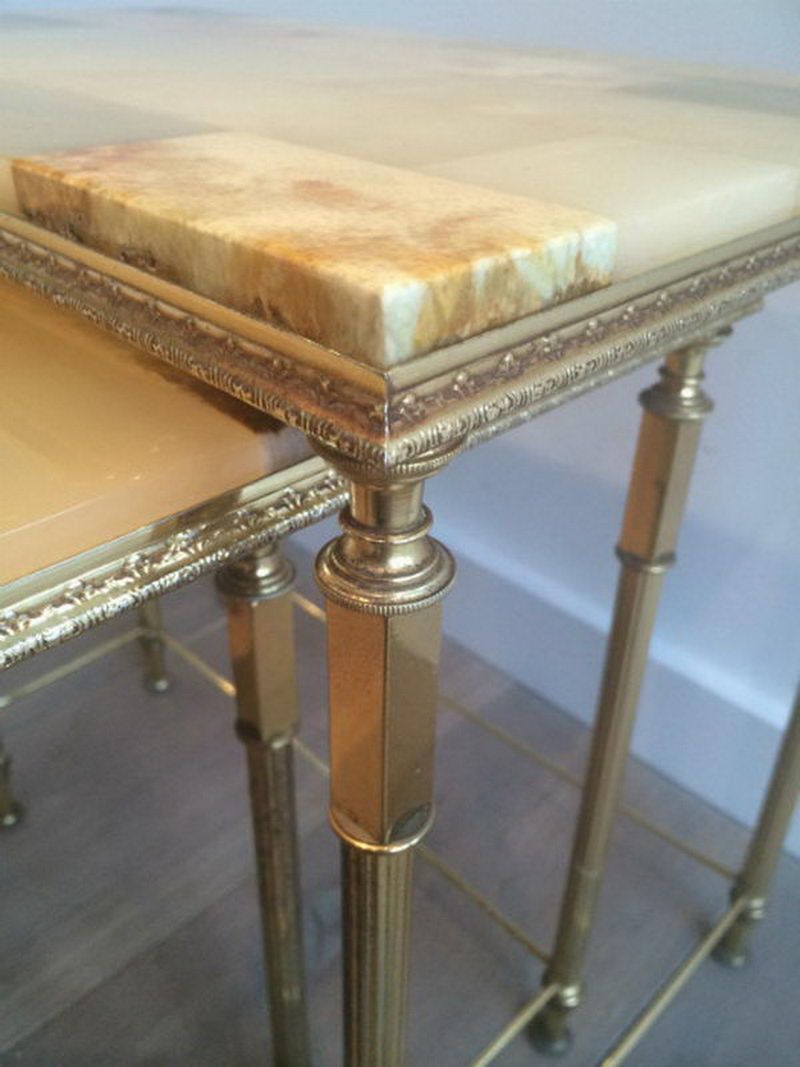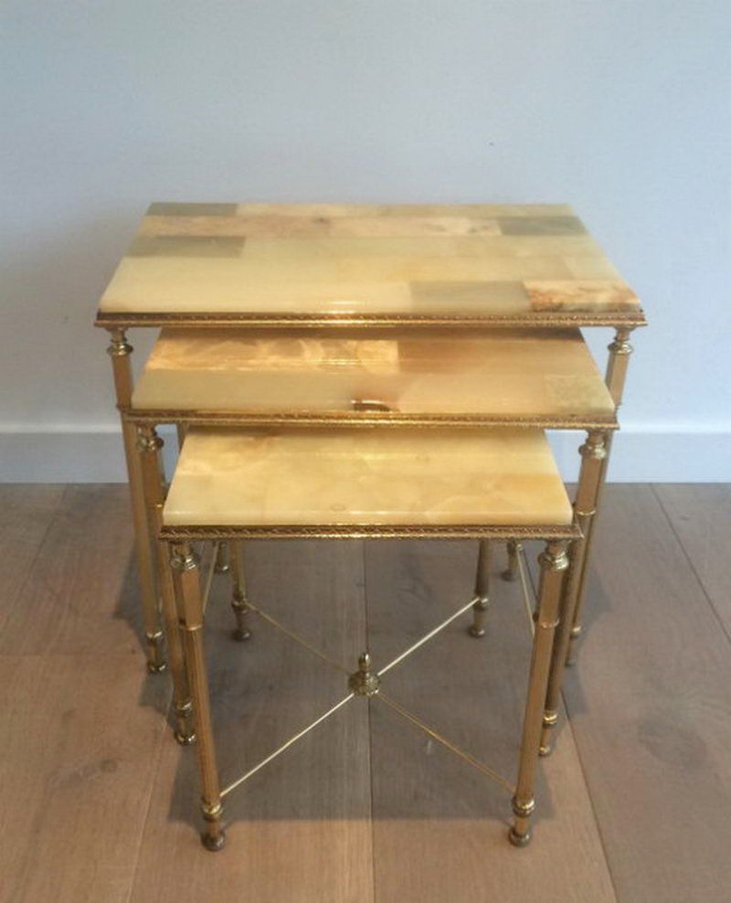 Set of Gilt Metal Nesting Tables with Onyx TopsSet of gilt metal nesting tables with onyx tops. Circa 1940Sold as a setRequest priceDimensionsWidth20.08 inch51 cmDepth12.99 inch33 cmHeight18.31 inch46.5 cmInformationProduct code50’s-12107
