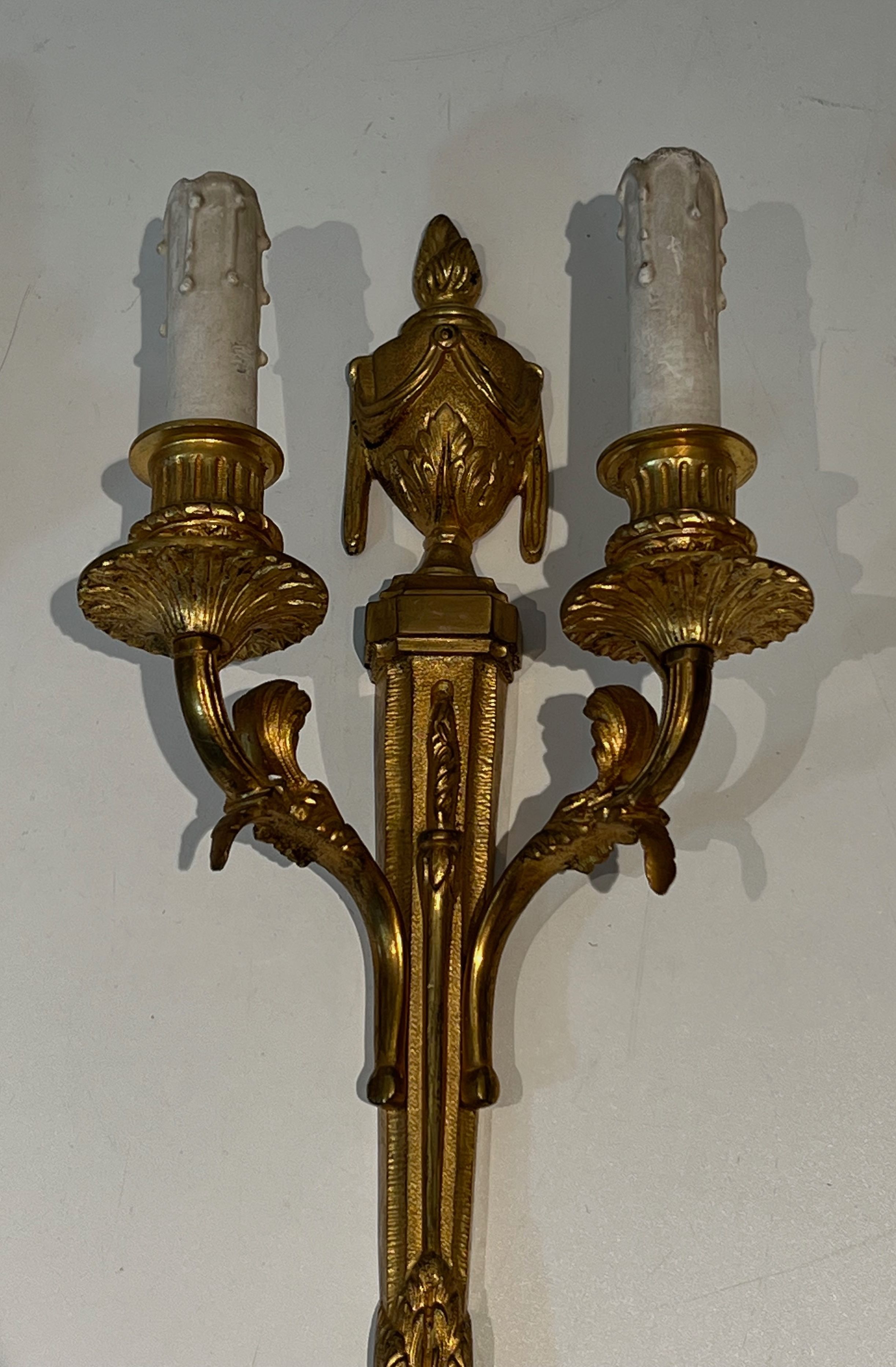 Set of Four Louis the 16th Style Bronze Wall SconcesSet of four bronze wall sconces. French Work in the style of Louis the 16th. Circa 1940Request priceDimensionsWidth6.5 inch16.5 cmDepth3.94 inch10 cmHeight13.98 inch35.5 cmInformationProduct codeBS-920