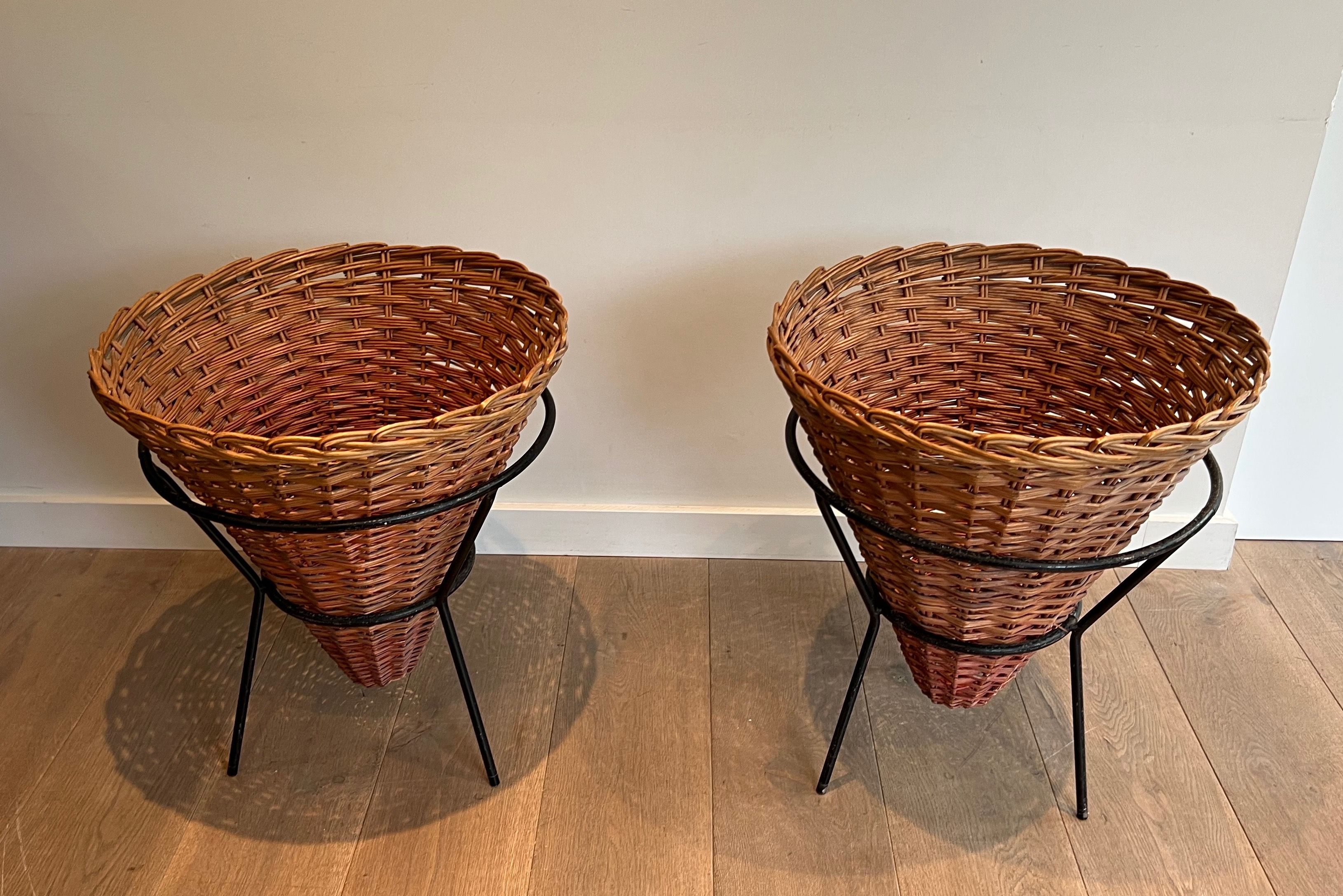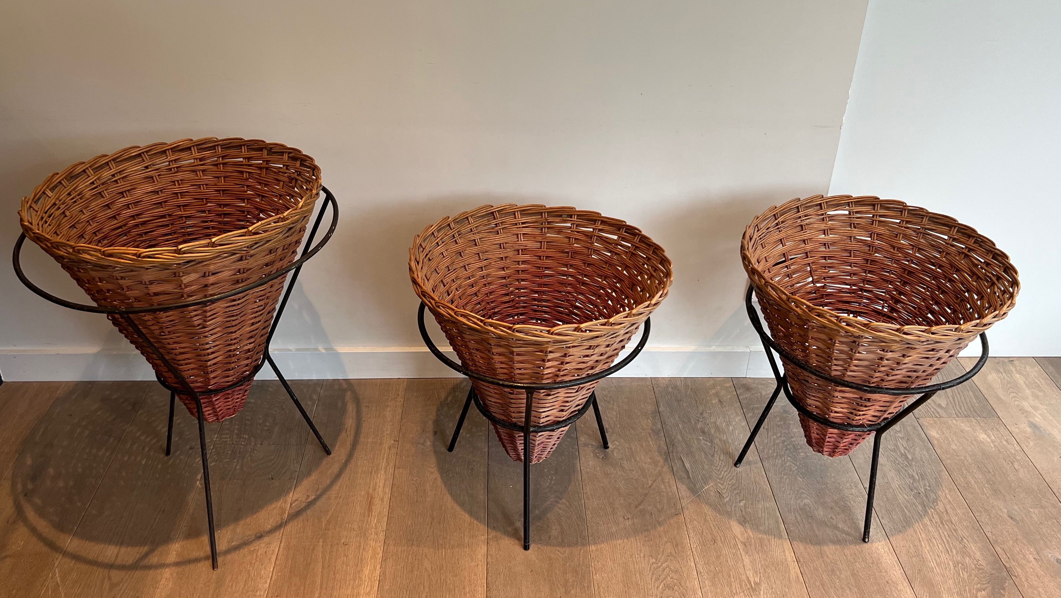 Set of Three Black Lacquered Metal and Rattan PlantersSet of three black lacquered metal and rattan planters. French work. Circa 1950Request priceDimensionsWidth22.64 inch57.5 cmDepth22.64 inch57.5 cmHeight28.94 inch73.5 cmInformationProduct code50's-55953