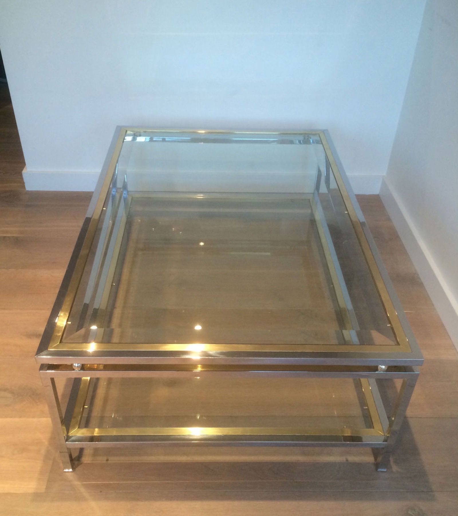 Chrome and Brass Coffee TableChrome and brass coffee table. French work. Circa 19702 available partRequest priceDimensionsWidth47.24 inch120 cmDepth31.5 inch80 cmHeight17.76 inch45.1 cmInformationProduct code50's-36596