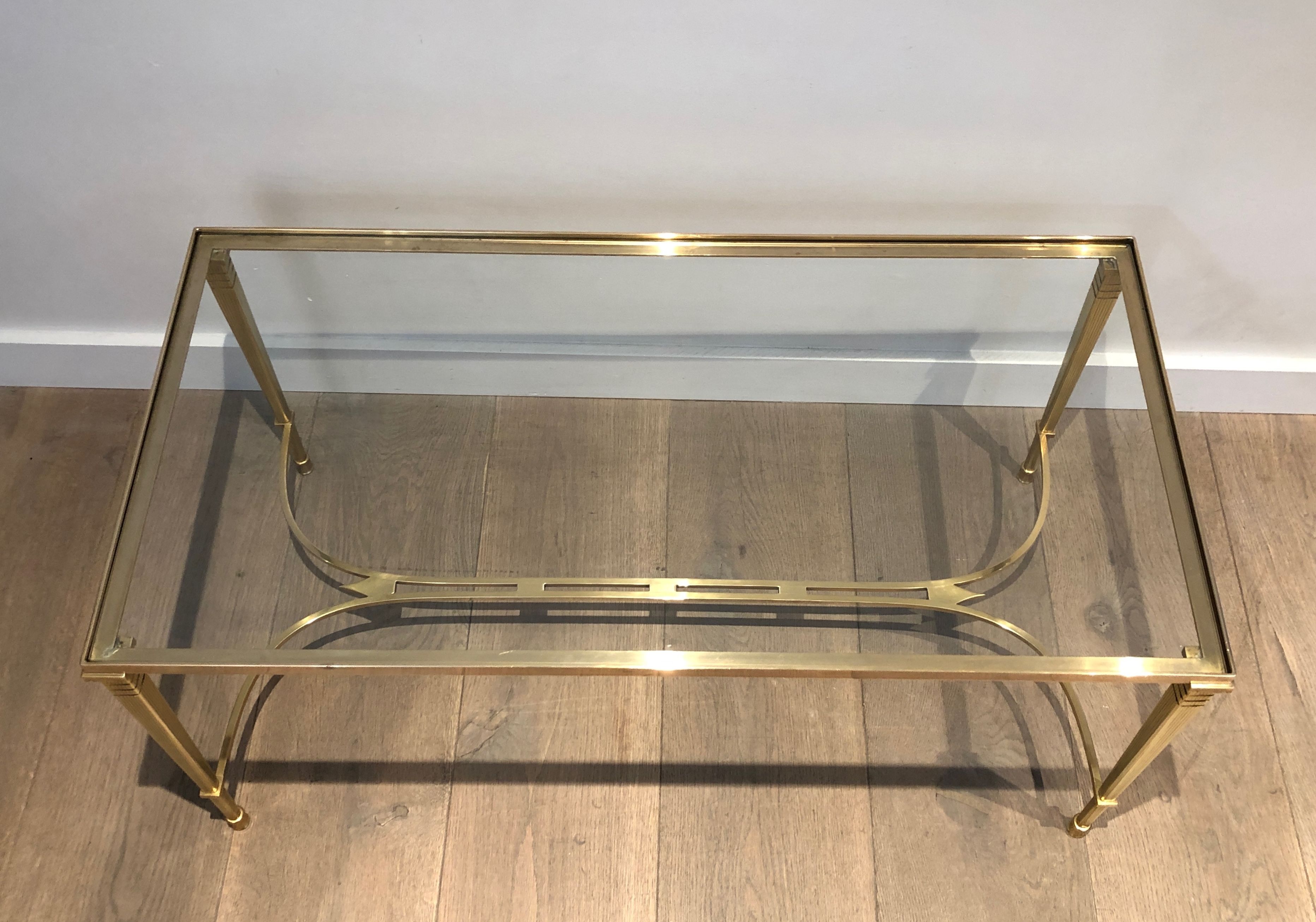 Neoclassical style brass coffee table with clear glass shelf. French Work by Maison Jansen. Circa 1940