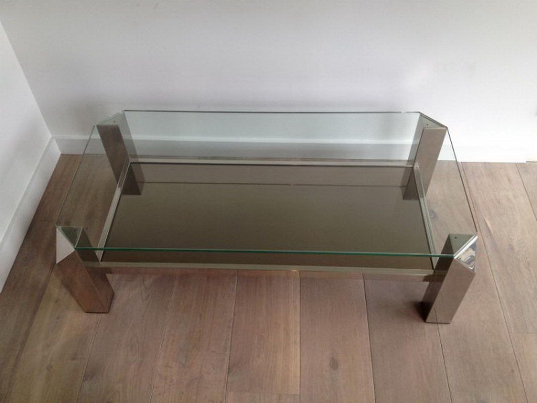 Octogonal Design Chrome Coffee with Clear glass and MirrorOctogonal Design Chrome Coffee with Clear glass and Mirror. Circa 1970Request priceDimensionsWidth47.24 inch120 cmDepth23.43 inch59.5 cmHeight15.75 inch40 cmInformationProduct code50's-3585