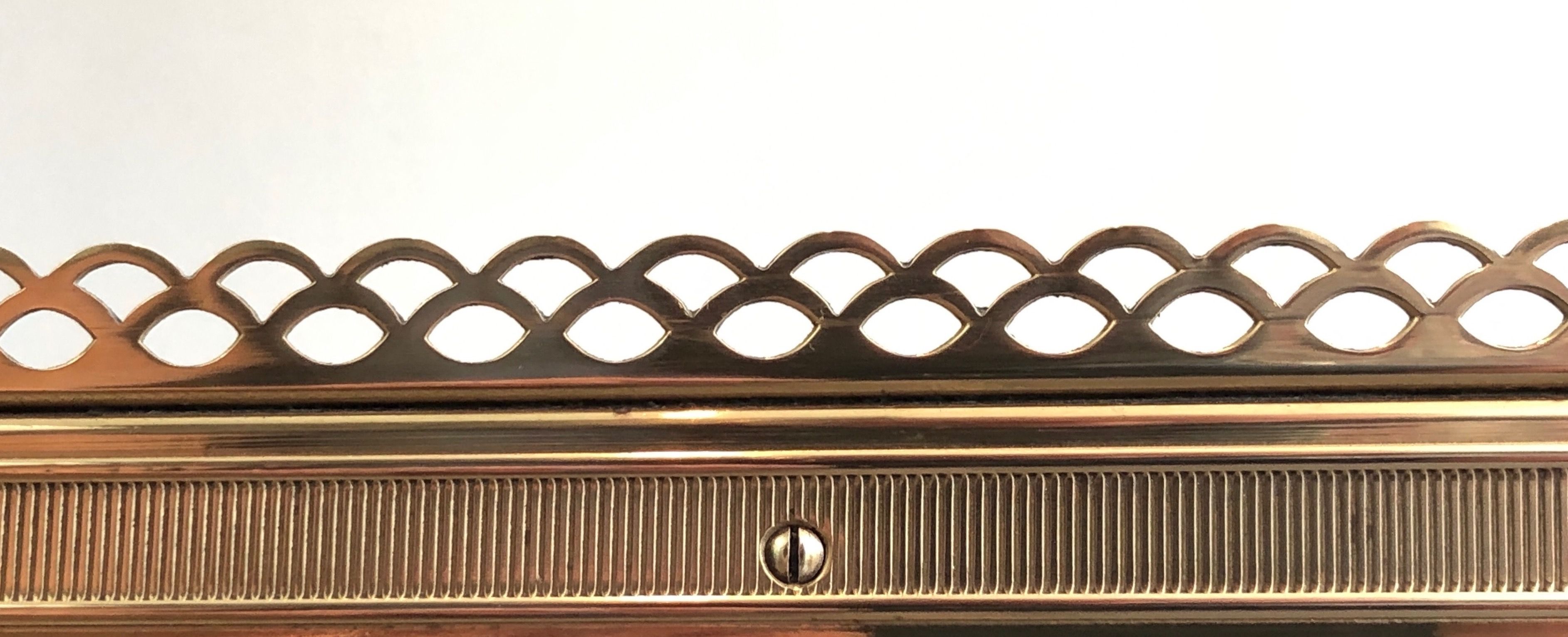 Brass Coffee Table with Eglomised Mirror Top Attributed to Maison Ramsay