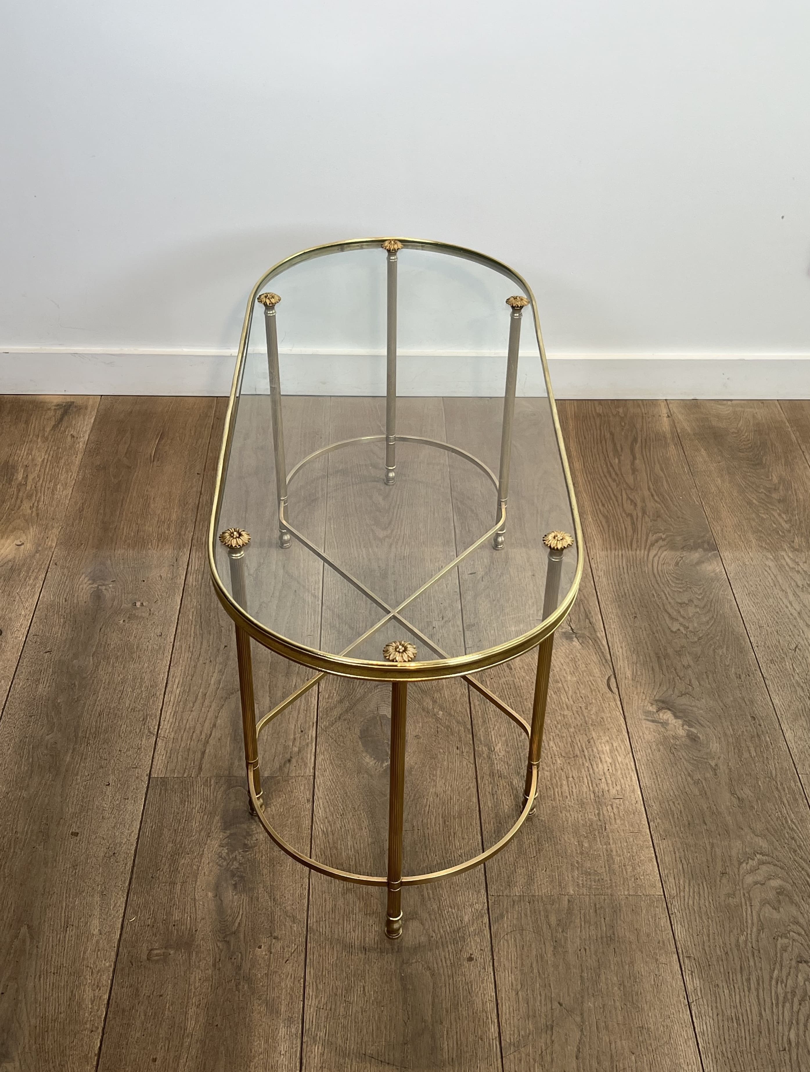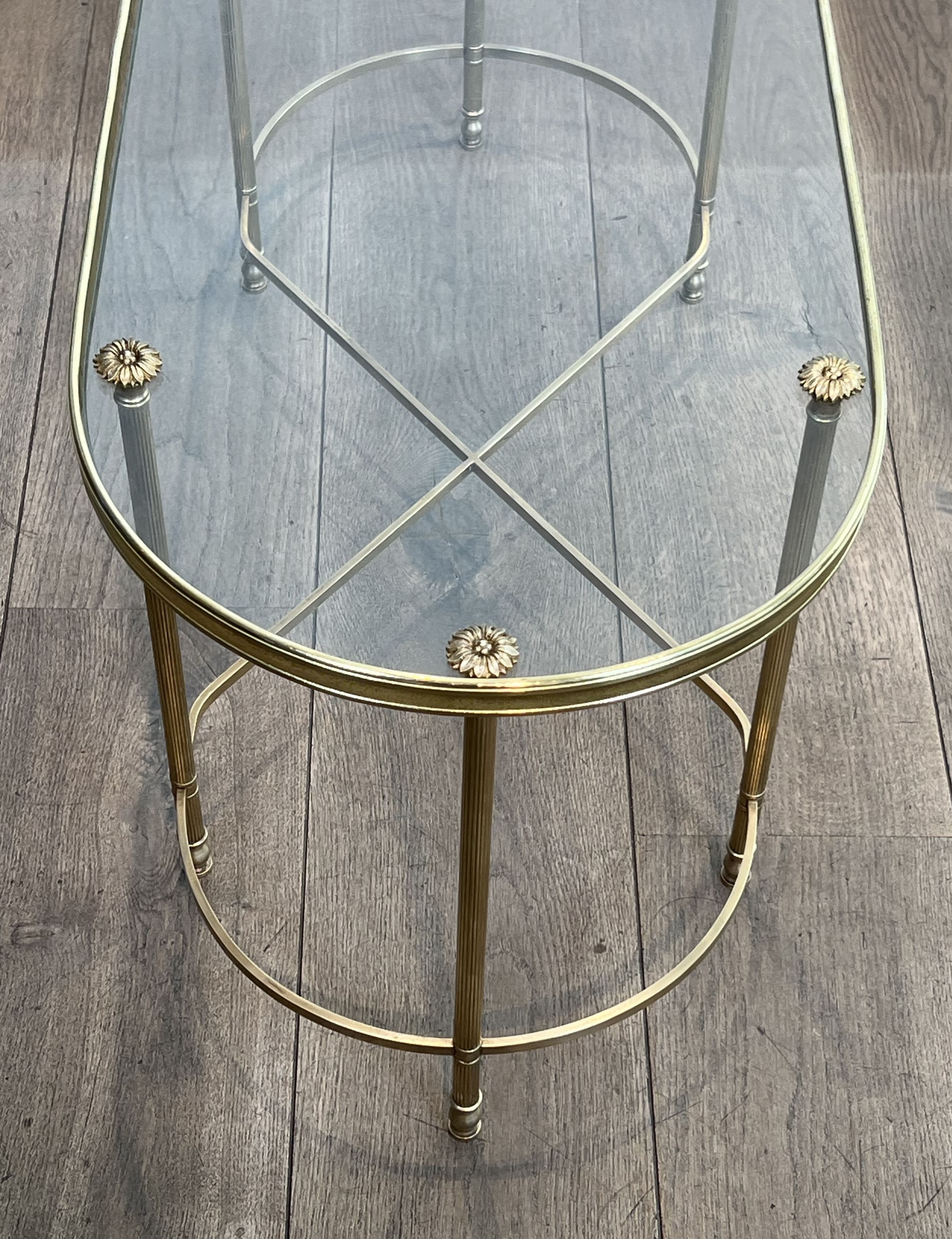 Oblong Brass and Glass Coffee Table, by Maison Baguès, 1960s