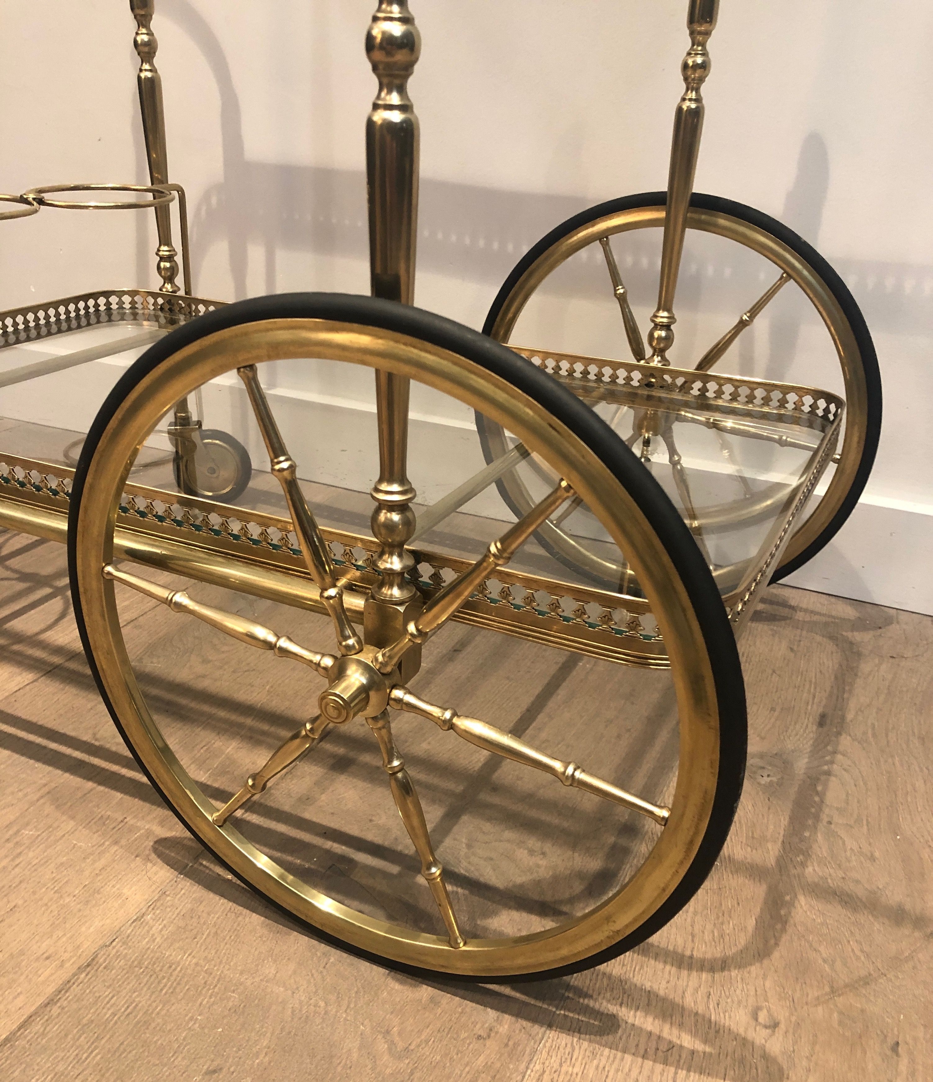 Neoclassical Style Brass Drinks Trolley with removable trays. French work in the style of Maison Jansen. Circa 1940