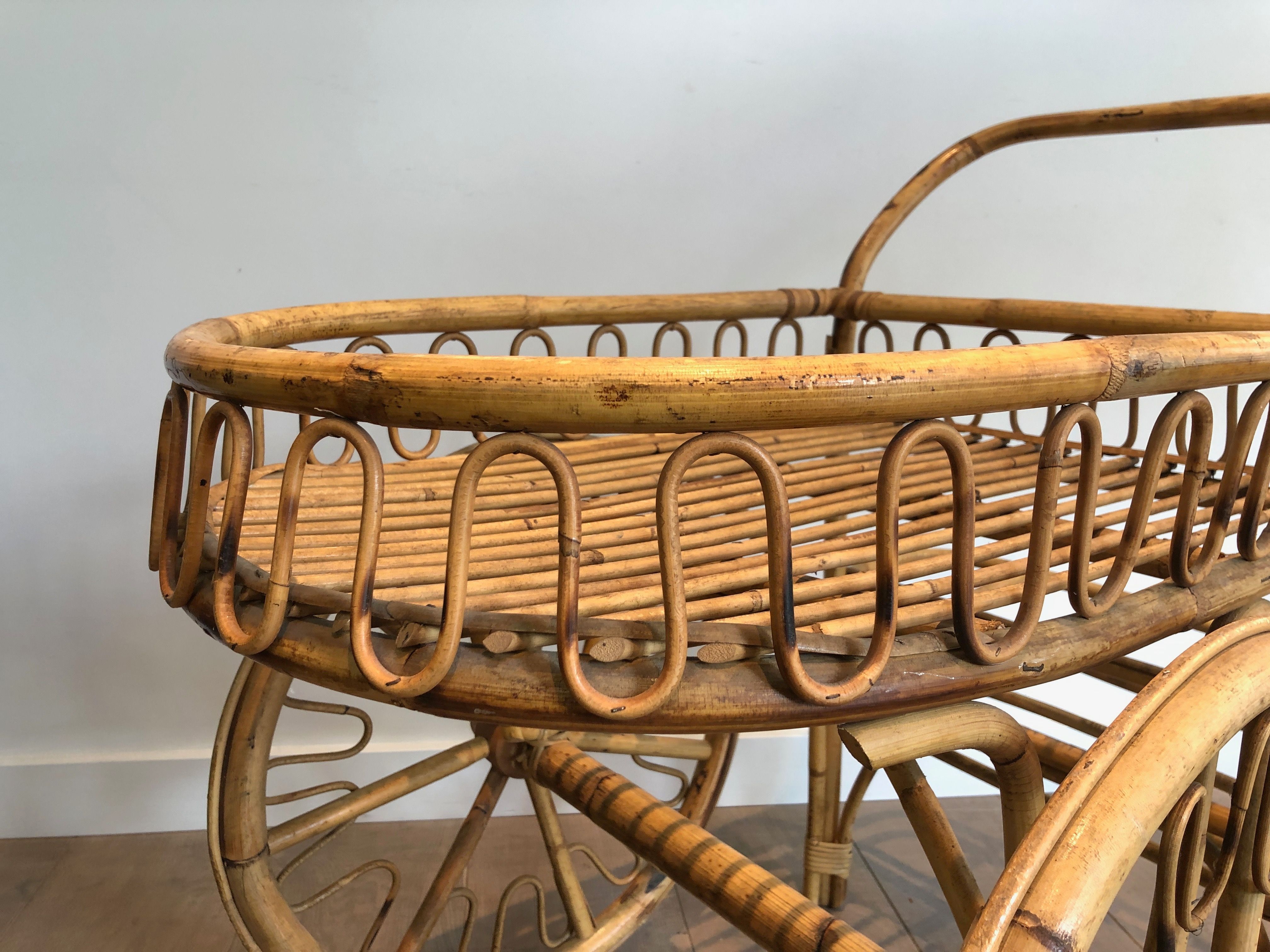 Rattan Drinks Trolley Attributed to Audoux MinetRattan drinks trolley. French work attributed to Audoux Minet. Circa 1970Request priceDimensionsWidth33.46 inch85 cmDepth26.77 inch68 cmHeight31.3 inch79.5 cmInformationProduct code50's-50199