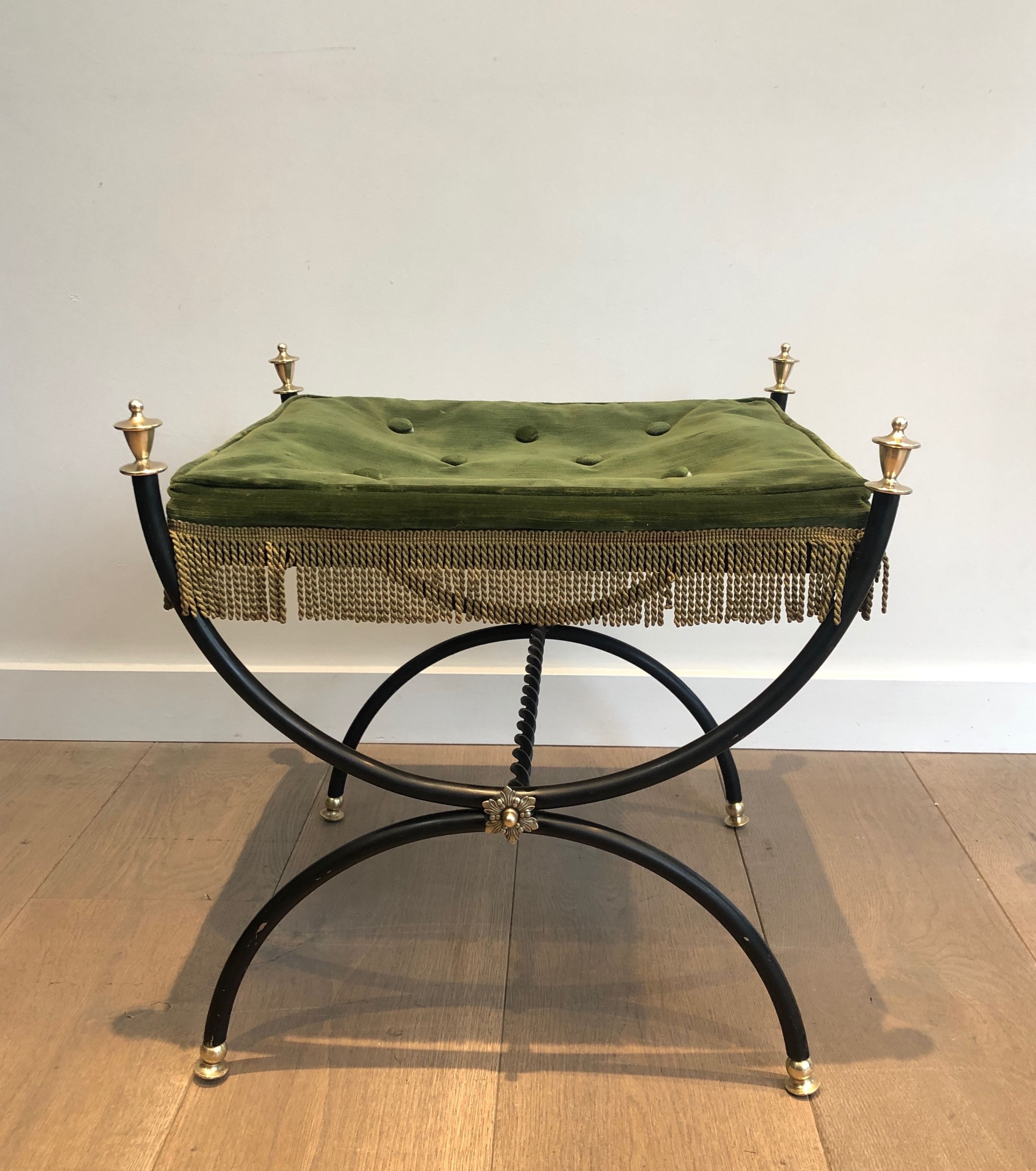 Neoclassical Style Black Lacquered and Brass Stool with Velvet Seat. French Work. Circa 1940Neoclassical style black lacquered metal stool with green velvet seat. French Work. Circa 1940Request priceDimensionsInformationProduct code50's-58404