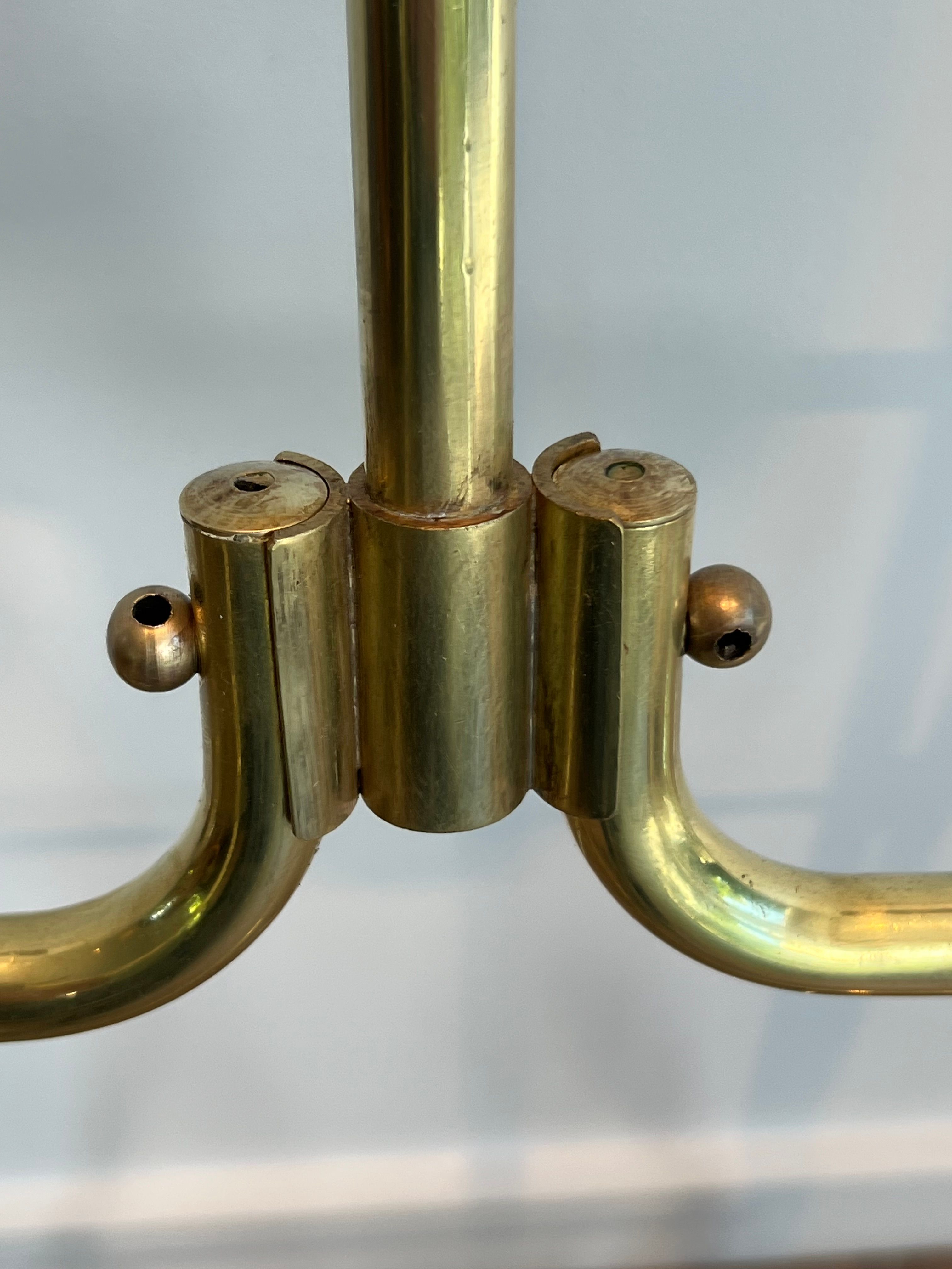 Neoclassical Style Folding Brass and Wood Valet on Casters