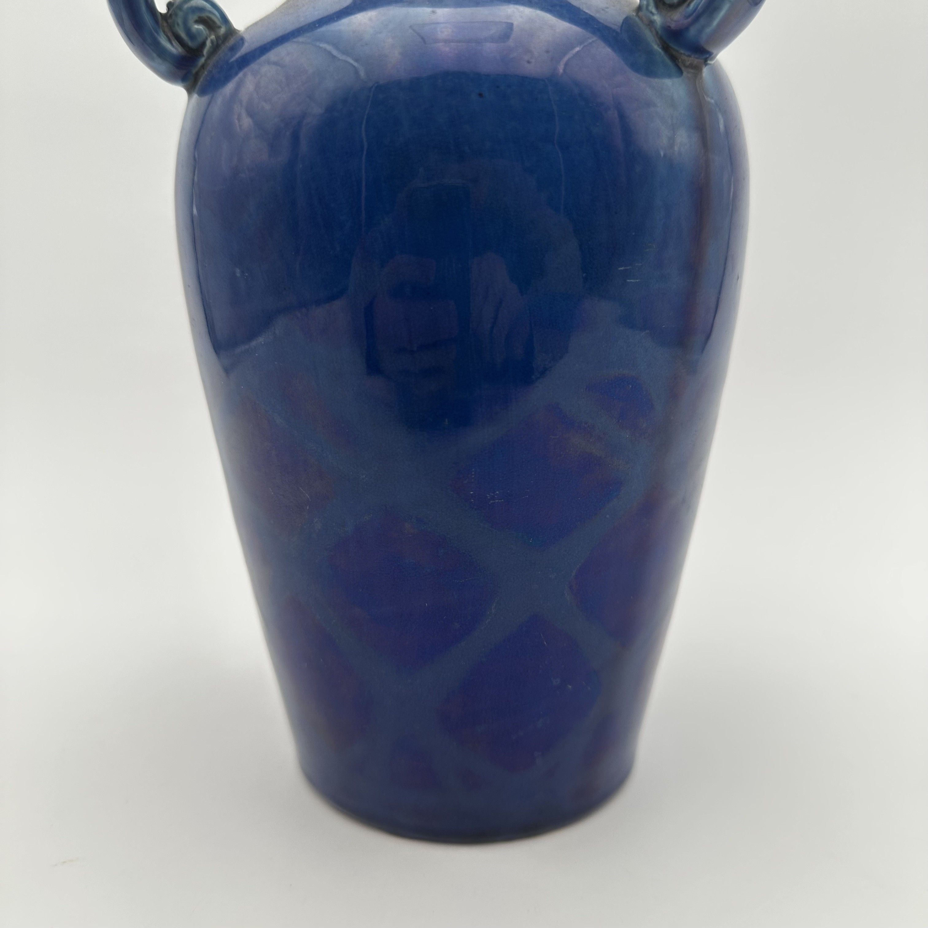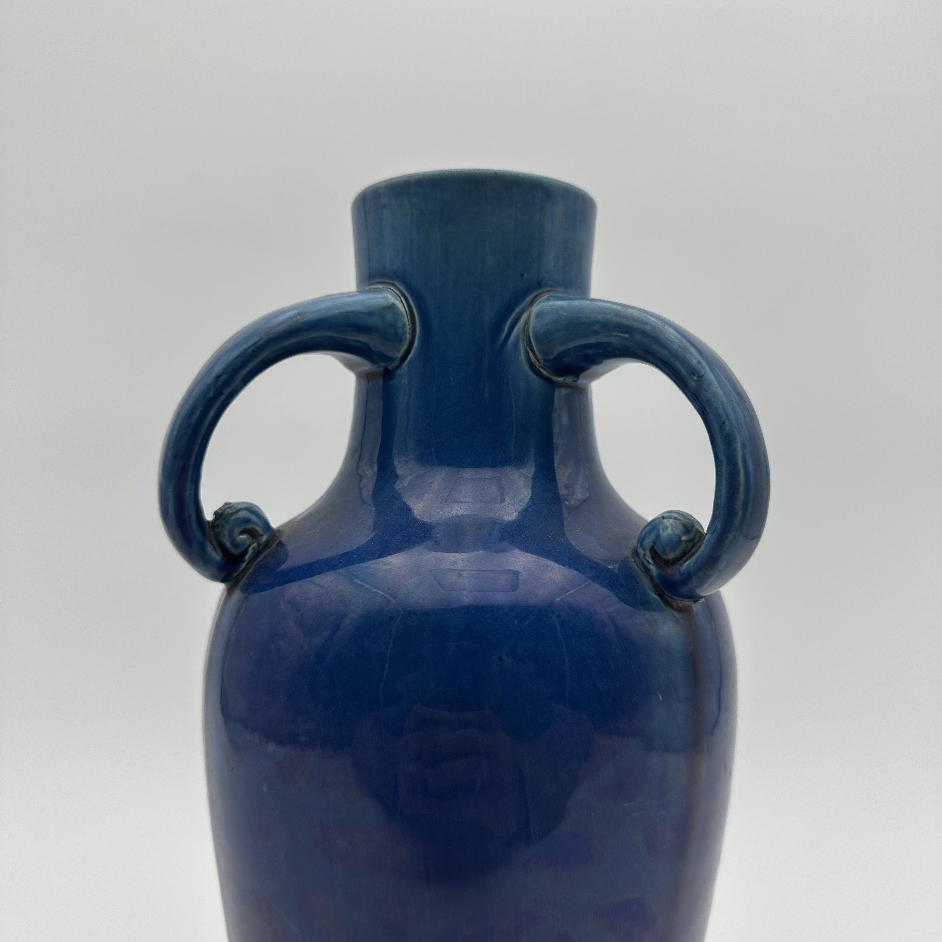 Cobalt Blue Glazed Ceramic Twin-Handled Baluster Vase, 1930s