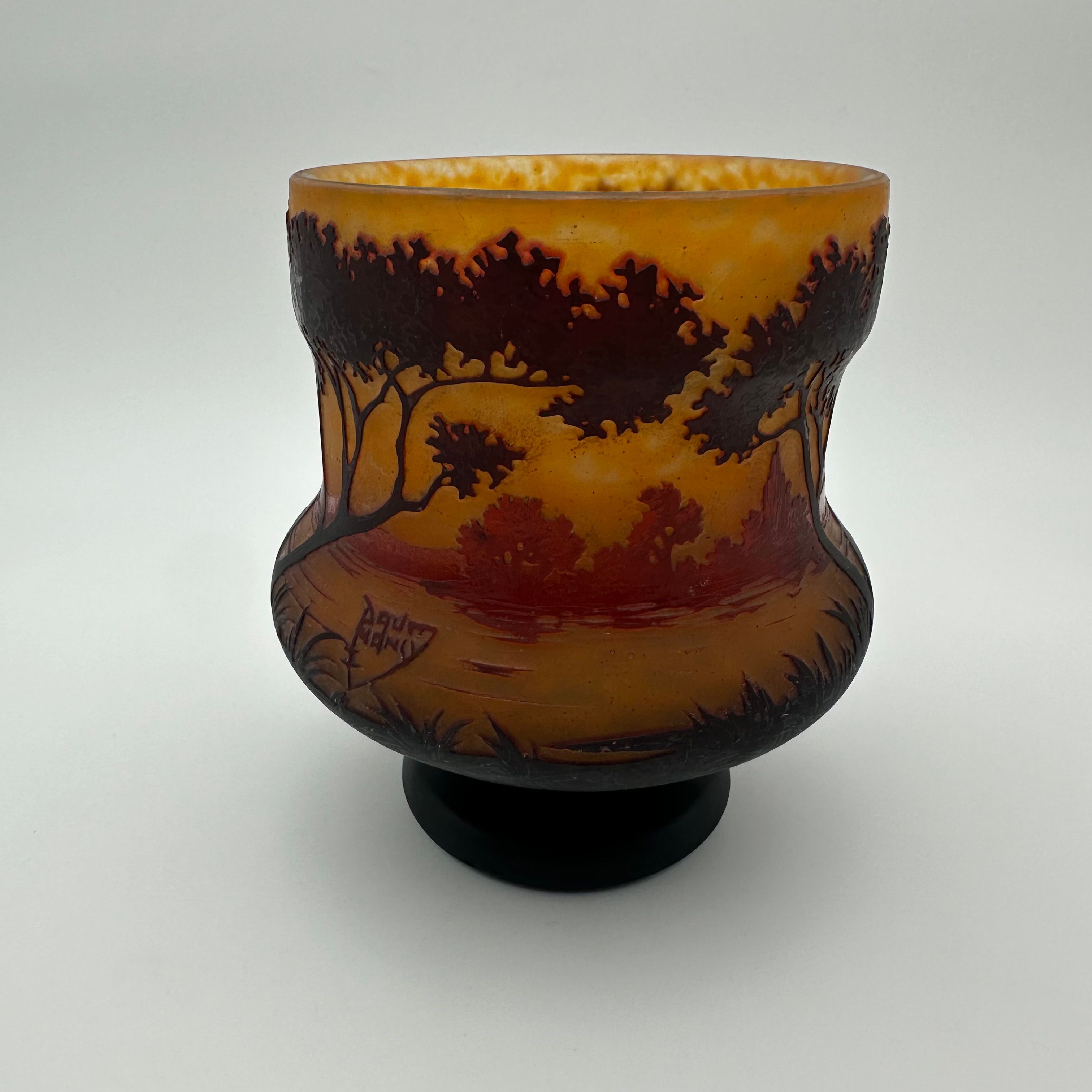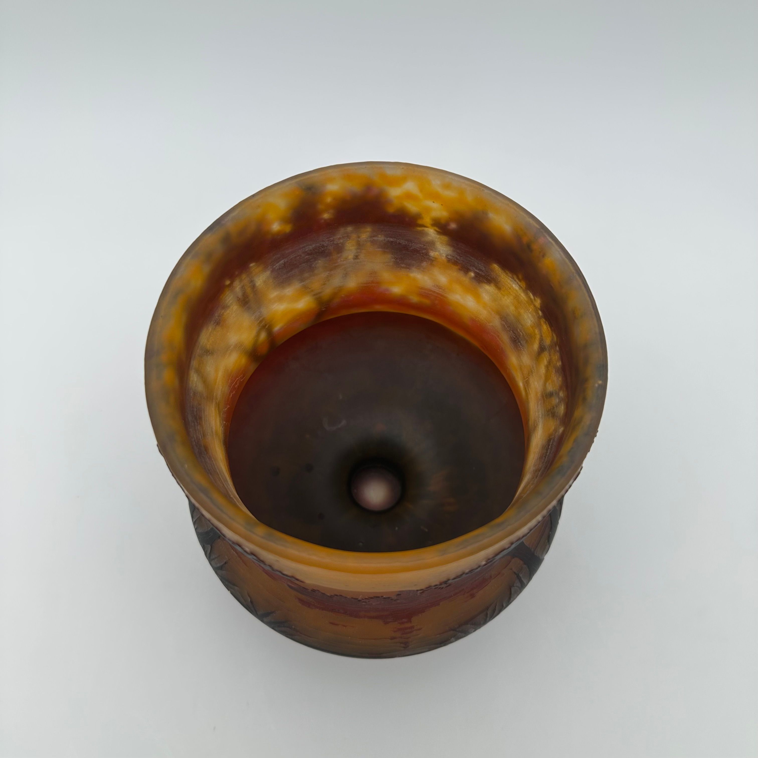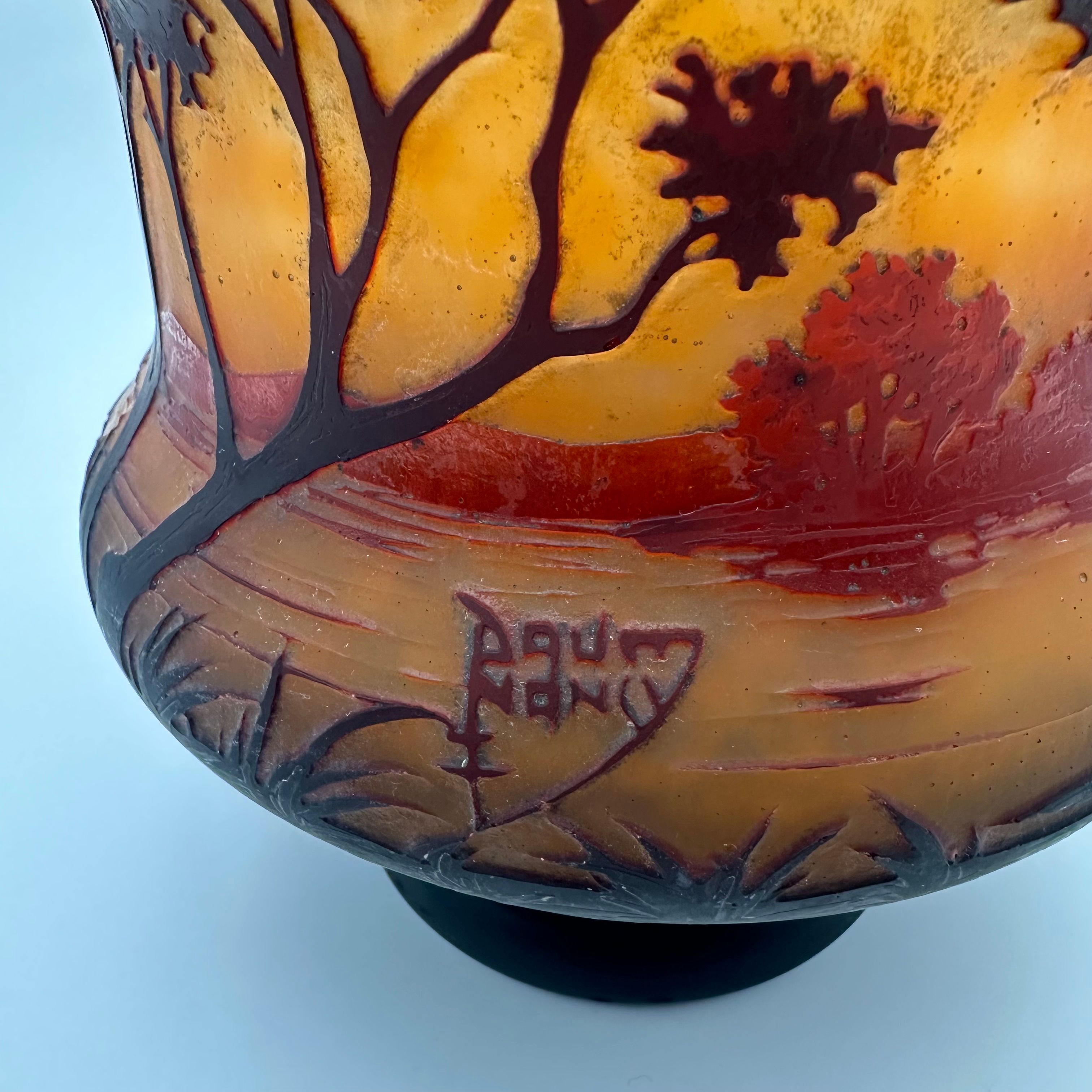The layered glass technique and delicate engraving reflect the refined craftsmanship associated with Daum Nancy’s early artistic period.