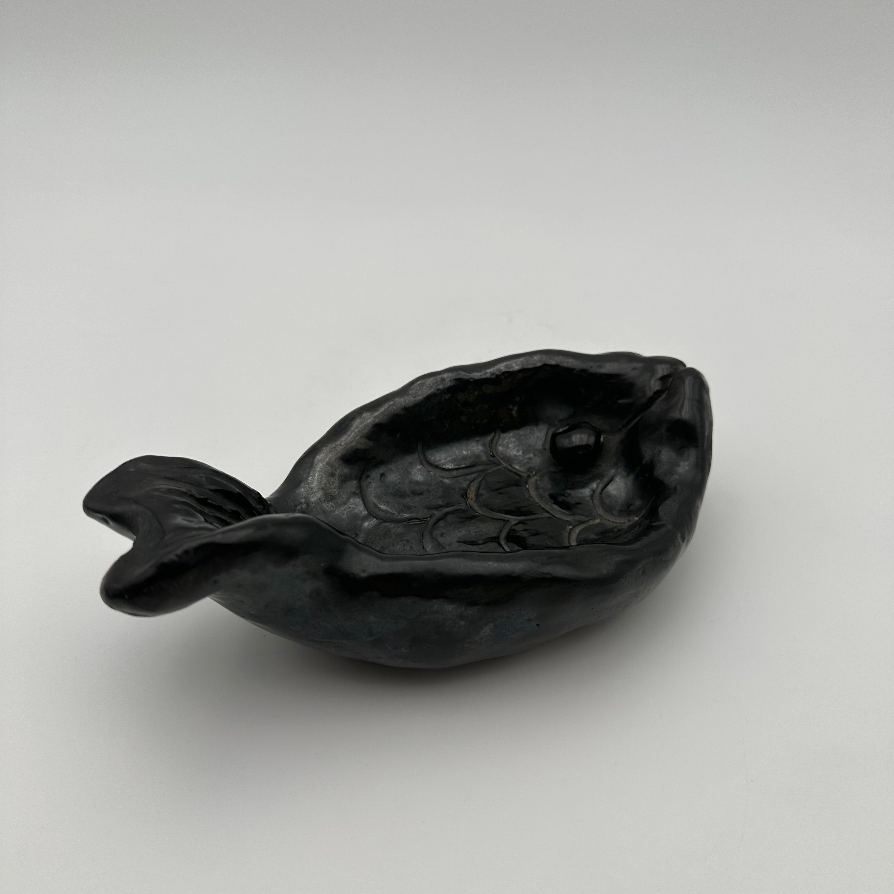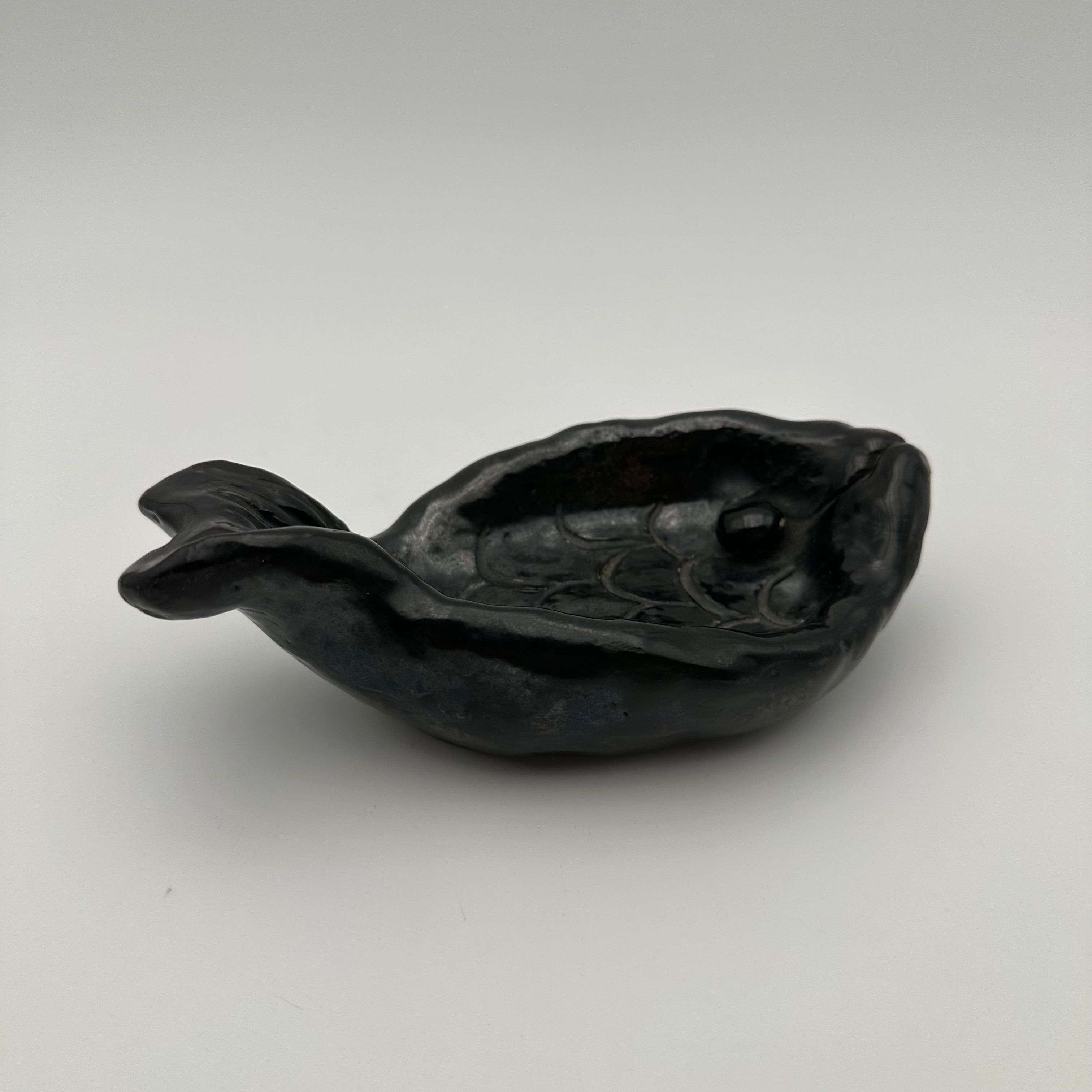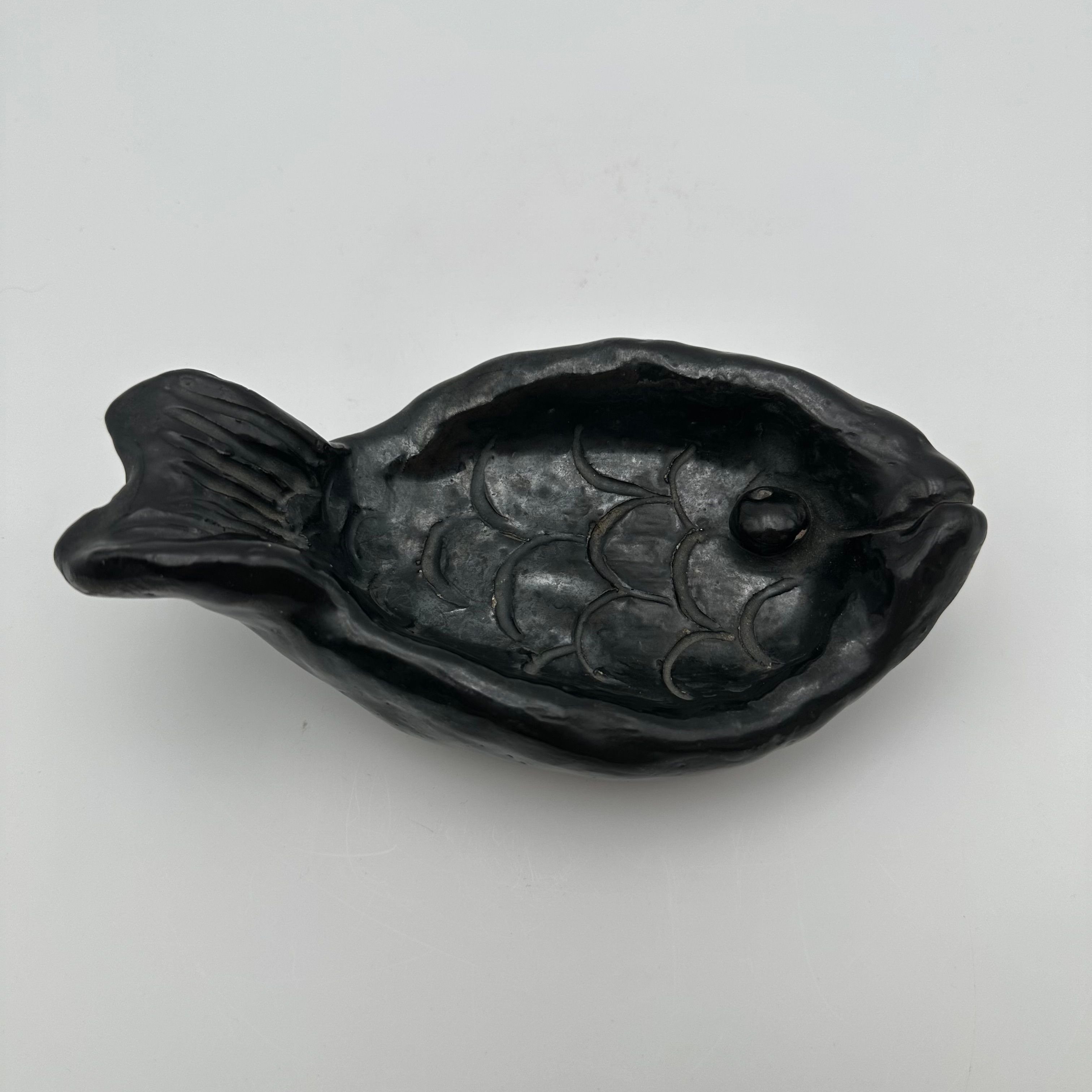 Black Ceramic Fish Vide-Poche – Signed, France, Circa 1970