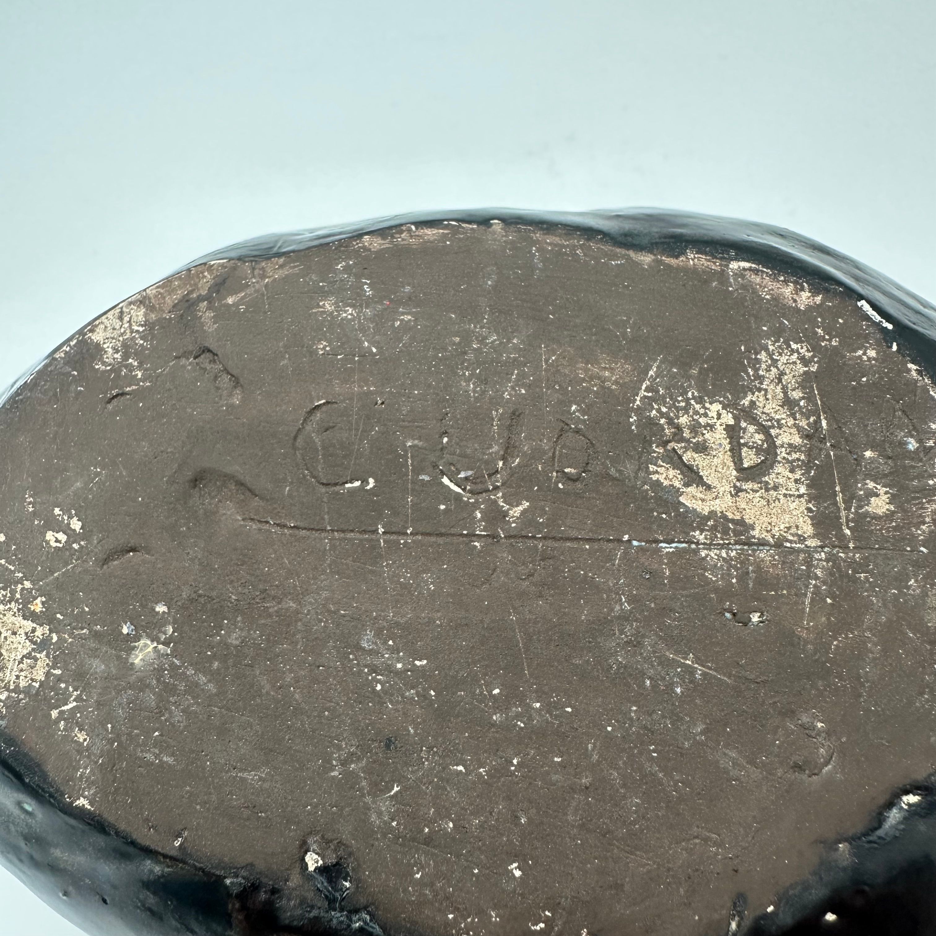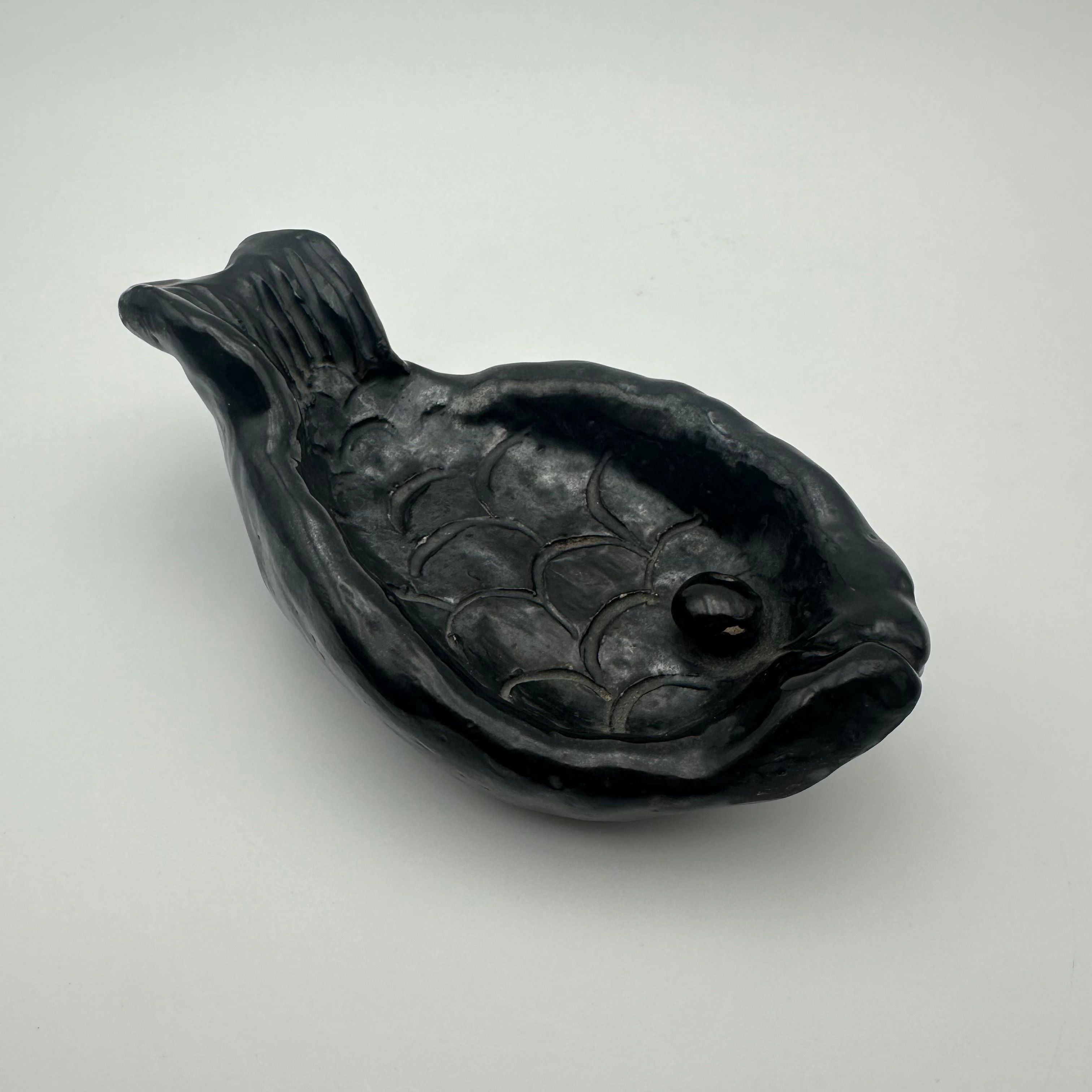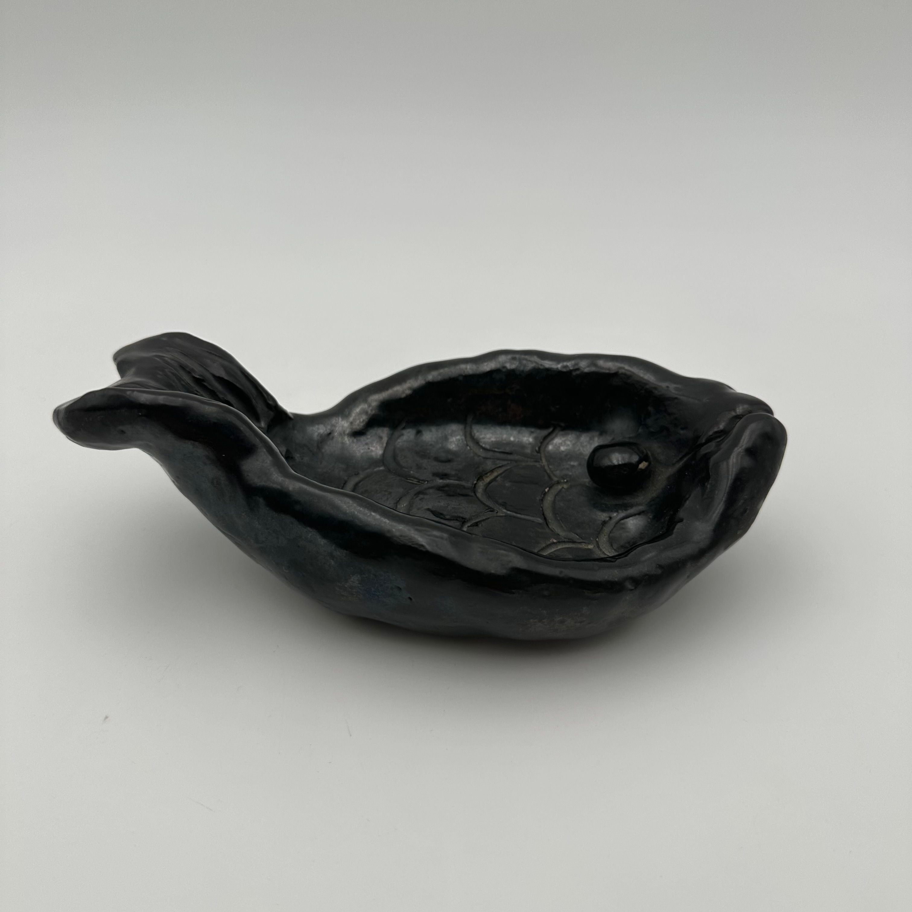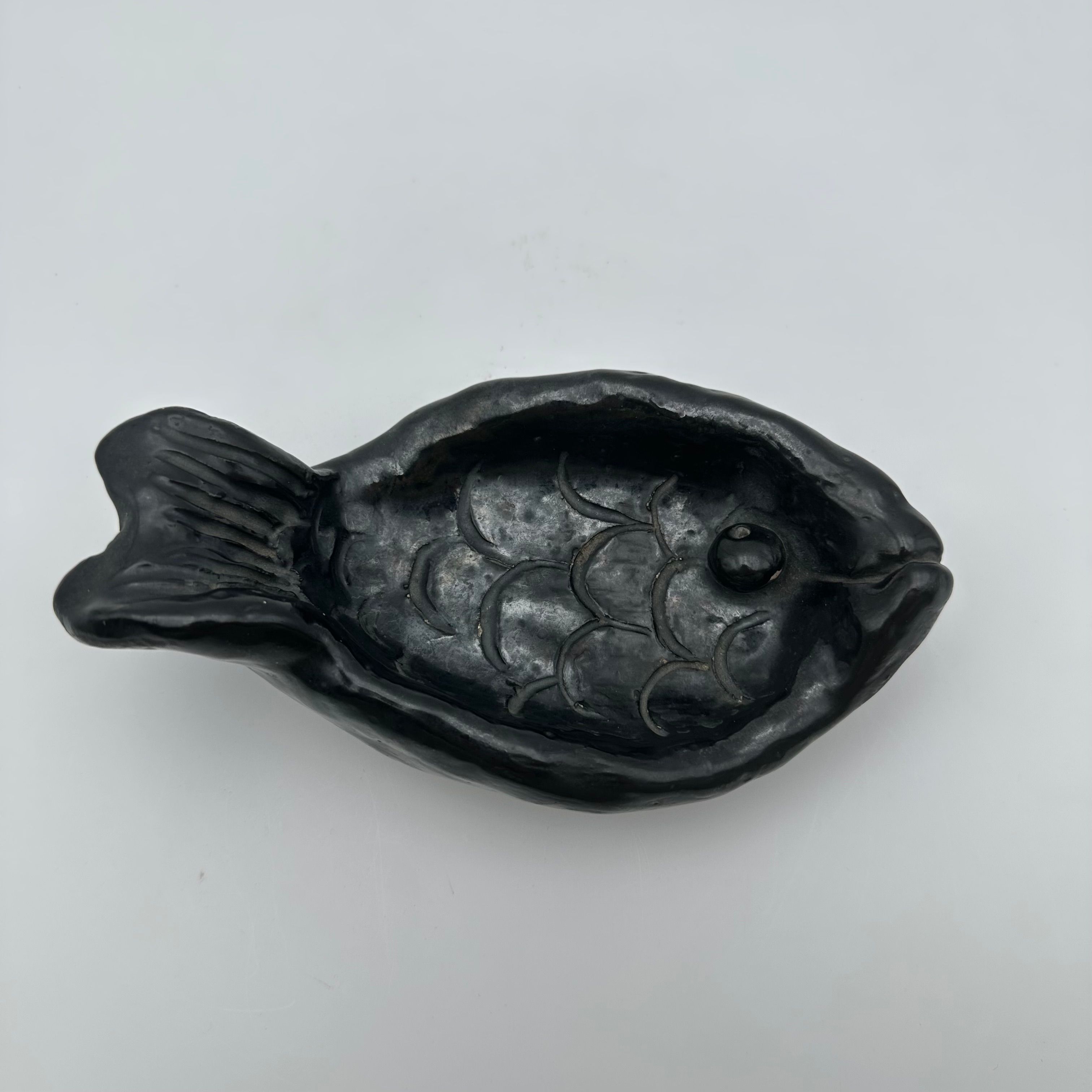 Black Ceramic Fish Vide-Poche – Signed, France, Circa 1970