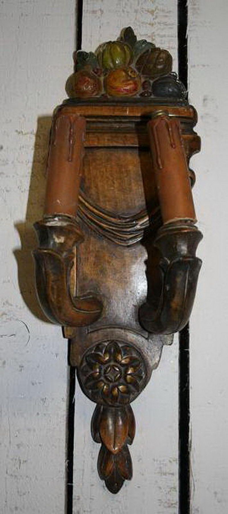 WS (802) Ancienne paire d'appliques en bois sculptéWS (802) Ancienne paire d'appliques en bois sculptéRequest priceDimensionsHeight16.93 inch43 cm